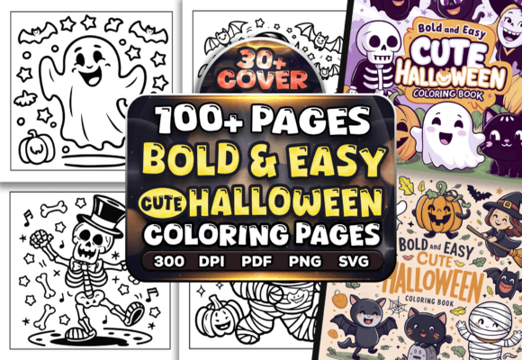 Discover the Bold Easy Cute Halloween Coloring Pages — a delightful collection of over 100 simple and charming illustrations perfect for festive coloring fun. Featuring smiling pumpkins, playful ghosts, cuddly black cats, cheerful bats, friendly witches, and other adorable spooky creatures, this set brings the cozy magic of Halloween to life.