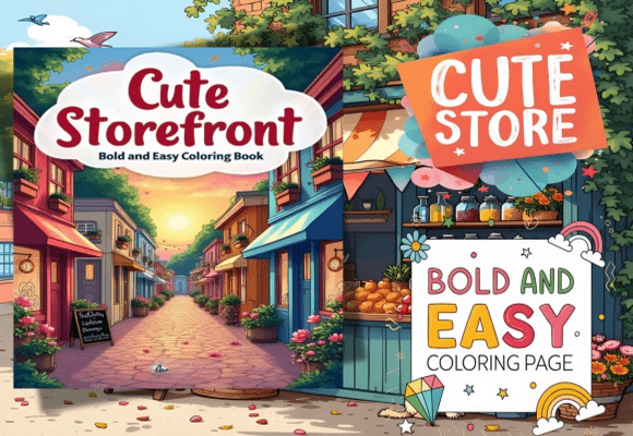 These high-resolution printable sheets (optimized for 8.5” x 8.5” with bleed) come in multiple formats: PDF, PNG, and SVG — perfect for crisp printing at home or use in digital design projects. The bundle includes 100 unique storefronts and 12 high-quality cover designs, ideal for creating your own coloring books.