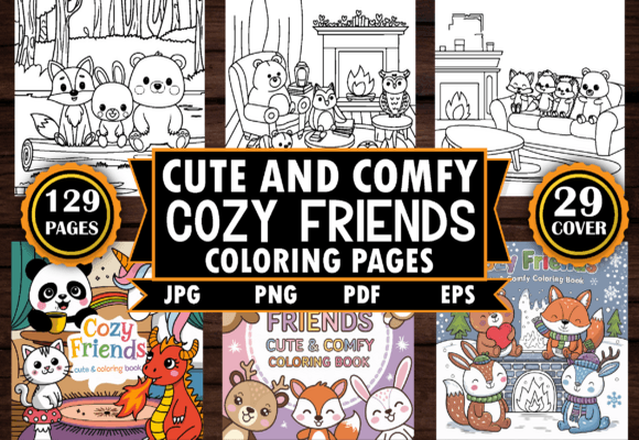 Dive into a world of warmth and charm with 129 Cozy Friends Cute & Comfy Coloring Pages — a delightful collection featuring super-cute animal characters enjoying peaceful moments in cozy spaces. From bunny baristas serving tea to bear friends reading under blankets and foxes napping by the window, each illustration radiates comfort, friendship, and gentle joy.