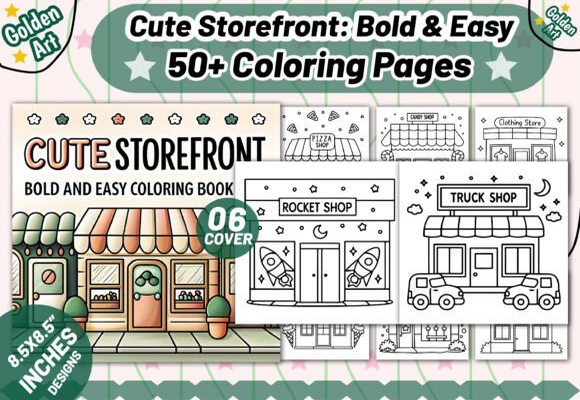 Step into a charming little town with 50+ Cute Storefronts Bold Easy Coloring Pages — a joyful collection of hand-drawn illustrations featuring cozy cafés, stylish boutiques, flower shops, and small businesses. Designed with bold, clean outlines, these pages are easy to color and perfect for kids, adults, and seniors seeking creative relaxation.