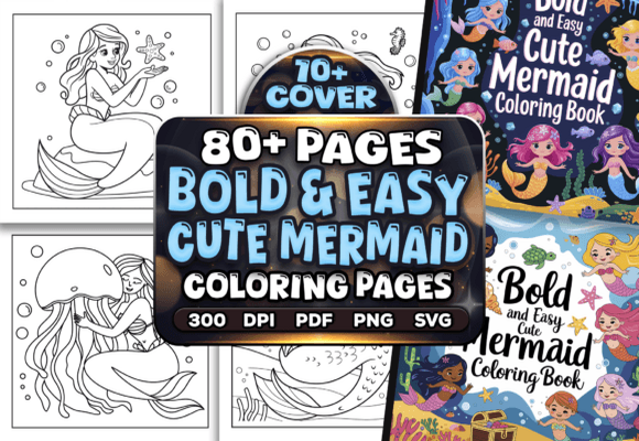 Dive into a magical world with these Bold and Easy Cute Mermaid Coloring Pages — a charming collection of over 80 adorable illustrations featuring sweet mermaids, playful dolphins, sparkling seashells, and enchanting ocean scenes. Designed for relaxation and creative joy, this set brings the beauty of the underwater world to your coloring page.